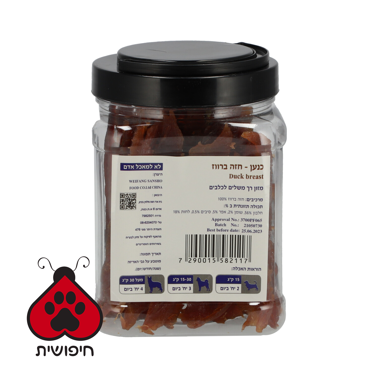 חטיף נהדר לכלבים מחברת כנען – חזה ברווז משקל : 400 ג'