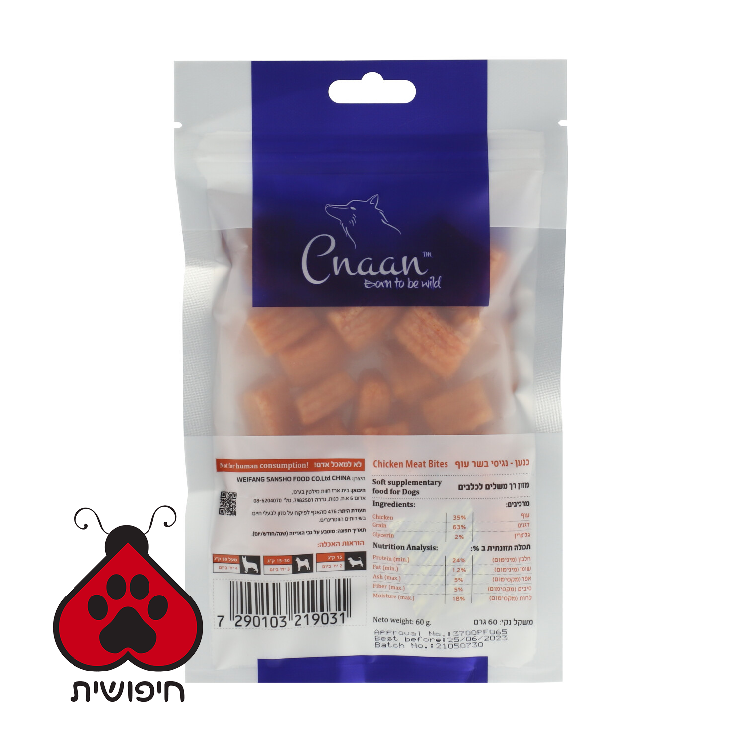 חטיף נהדר לכלבים מחברת כנען – נגיסי בשר עוף 100 ג'