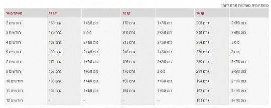 חלבון: 32% – שומן: 18% – אפר: 7.2% – סיבים 1.8%.